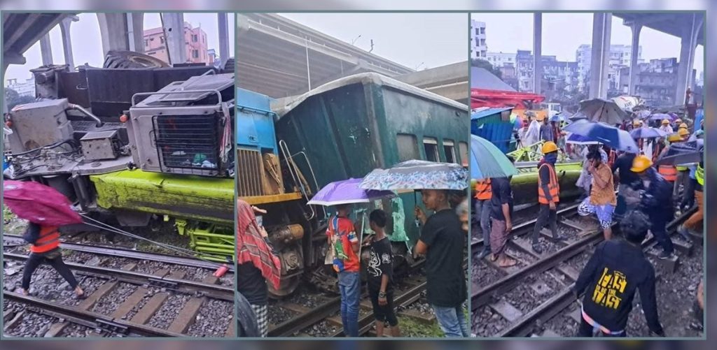 তেজগাঁওয়ে ক্রেনের আঘাতে লাইনচ্যুত ট্রেন, ঢাকার সঙ্গে যোগাযোগ বন্ধ