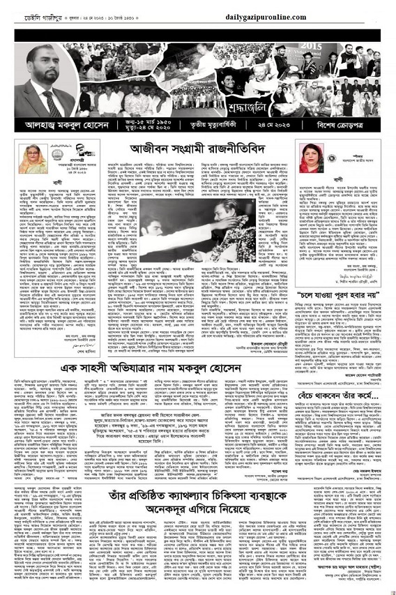 দেশজুড়েঢাকারাজধানী আলহাজ্ব মকবুল হোসেনের প্রতি শ্রদ্ধাঞ্জলি——নাসির উদ্দীন বুলবুল,সম্পাদক ডেইলি গাজীপুর By admin - মে ২৪, ২০২৩ 0 104 Facebook Twitter Google+ Pinterest WhatsApp আলহাজ্ব মকবুল হোসেনের প্রতি শ্রদ্ধাঞ্জলি——নাসির উদ্দীন বুলবুল,সম্পাদক ডেইলি গাজীপুর
