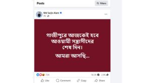 এ ঘটনায় সামাজিক যোগাযোগমাধ্যমে প্রতিক্রিয়া জানিয়েছেন জাতীয় নাগরিক কমিটির মুখ্য সংগঠক সারজিস আলম। শুক্রবার দিনগত রাতে নিজের ভেরিফায়েড ফেসবুক অ্যাকাউন্টে তিনি লেখেন, ‘গাজীপুরে আজকেই হবে আওয়ামী সন্ত্রাসীদের শেষ দিন। আমরা আসছি…। ’