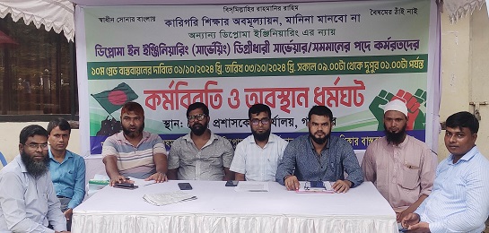 গাজীপুরে ডিপ্লোমা ডিগ্রীধারী সার্ভেয়ারদের কর্মবিরতি ও অবন্থান ধর্মঘট