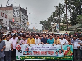 অলিদুর রহমান অলি: গাজীপুরে বিএনপি-জামাতের দেশবিরোধী ষড়যন্ত্রের প্রতিবাদে এবং ডিজিটাল বাংলাদেশকে স্মার্ট বাংলাদেশে উন্নতিকরণের লক্ষ্যে গাজীপুর মহানগর দলীয় কার্যালয়ে “তারুণ্যের জয়যাত্রা” সমাবেশ অনুষ্ঠিত হয়েছে। বাংলাদেশ আওয়ামী যুবলীগের চেয়ারম্যান শেখ ফজলে শামস্ পরশ ও সাধারণ সম্পাদক আলহাজ্ব মাইনুল হোসেন খান নিখিলের নির্দেশে এবং গাজীপুর মহানগর যুবলীগের উদ্যোগে “তারুণ্যের জয়যাত্রা” সমাবেশে মহানগর যুবলীগের হাজার হাজার নেতাকর্মী অংশগ্রহণ গাজীপুর করেন। মহানগর যুবলীগের আহ্বায়ক কামরুল আহসান রাসেলের সভাপতিত্বে মহানগর যুবলীগের যুগ্ম আহ্বায়ক সদস্য আলমগীর হোসেনের সঞ্চালনায় বিক্ষোভ গাজীপুর মহানগর যুবলীগ মিছিল ও প্রতিবাদ সভায় উপস্থিত ছিলেন, গাজীপুর মহানগর যুবলীগের যুগ্ম আহ্বায়ক মো: সাইফুল ইসলাম, সুমন আহমেদ শান্ত বাবু, আহ্বায়ক সদস্য বদরুল আলম পাশা, রাজিবুল হাসান রাজীব, টঙ্গী পশ্চিম থানা যুবলীগের সভাপতি পদপ্রার্থী মো: আক্তার সরকার, ৪৭ নং ওয়ার্ড যুবলীগের সদস্য ও গাজীপুর সিটি করপোরেশনের কাউন্সিলর আমির হামজা, মনির হোসেন জীবন, খোরশেদ আলম প্রমুখ।