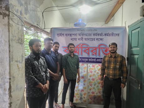 ব্যবস্থাপনা অধিদপ্তরের কর্মচারীদের পদনাম পরিবর্তন এবং দুর্যোগ ব্যবস্থাপনা অধিদপ্তরের সব শূন্যপদ/পদোন্নতি/চলতি দায়িত্ব নিয়োগের মাধ্যমে পূরণের এ পাঁচটি যৌক্তিক দাবি নিয়ে উক্ত অধিদপ্তরের সংযুক্ত কর্মকর্তা-কর্মচারী কল্যাণ পরিষদ গত ৮/১০ বছর ধরেই সুশৃঙ্খল আন্দোলন করে আসছে।