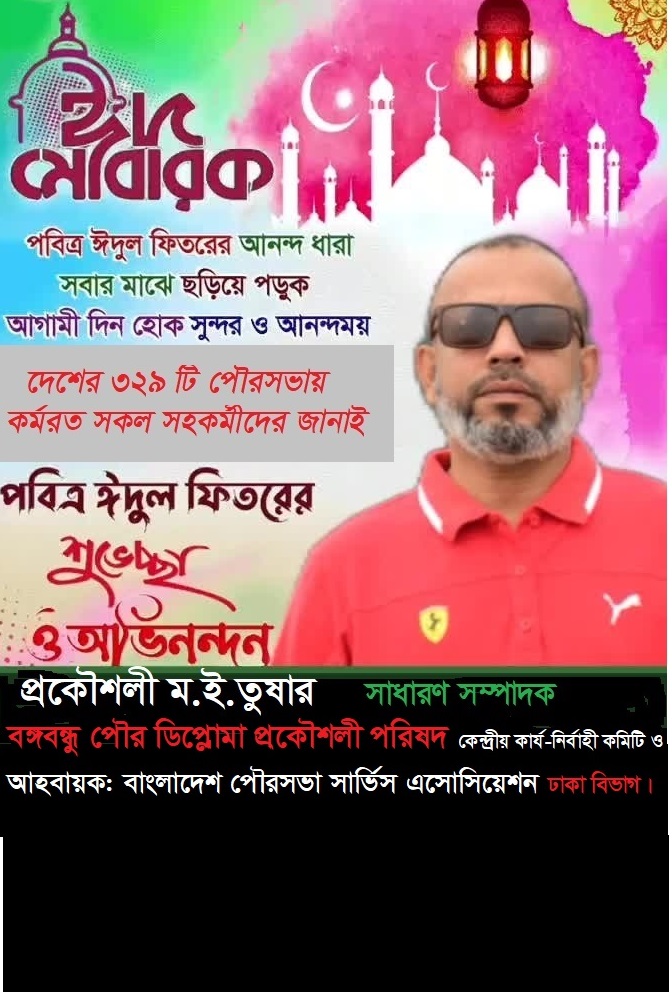 আর্কাইভছবি গ্যালারিজাতীয় পবিত্র ঈদুল ফিতরের শুভেচ্ছা By admin - এপ্রিল ২০, ২০২৩ 0 191 Facebook Twitter Google+ Pinterest WhatsApp দেশের ৩২৯ টি পৌরসভায় কর্মরত সকল সহকর্মীদের জানাই পবিত্র ঈদুল ফিতরের শুভেচ্ছা ।