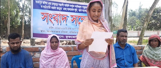 ডেইলি গাজীপুর প্রতিবেদক : দিনাজপুরের পার্বতীপুরে জমি সংক্রান্ত বিরোধের জেরে হামলা ও ভাংচুর অভিযোগে সংবাদ সম্মেলন করেছে ভুক্তভোগীরা। বৃহস্পতিবার সকাল ১০টায় উপজেলার হরিরামপুর ইউনিয়নের আনন্দবাজার চাচেঁয়া গ্রাম ঘটনাস্থলে অনুষ্ঠানের আয়োজন করা হয়। এসময় ভুক্তভোগী পরিবারের পক্ষে লিখিত বক্তব্য নিপা আক্তার বলেন, দীর্ঘদিন যাবত তারা পৈত্রিক সূত্রে পাওয়া ও জমিতে বসবাস করে আসছেন। গত বৃহস্পতিবার দুপুরে হারুনুর রশিদের নেতৃত্বে এক দল মানুষ পরিবারের লোকজনকে মারপিটসহ বাড়িঘর ভাংচুর দখলে নেয়ার চেষ্টা করে। এ ঘটনায় পর থেকে খোলা আকাশের নিচে অবস্থান করছে ভুক্তভোগীরা। এদিকে, তদন্ত সাপেক্ষে প্রয়োজনীয় ব্যবস্থা নিতে সংশ্লিষ্টদের হস্তক্ষেপ কামনা করেন ভুক্তভোগীরা।