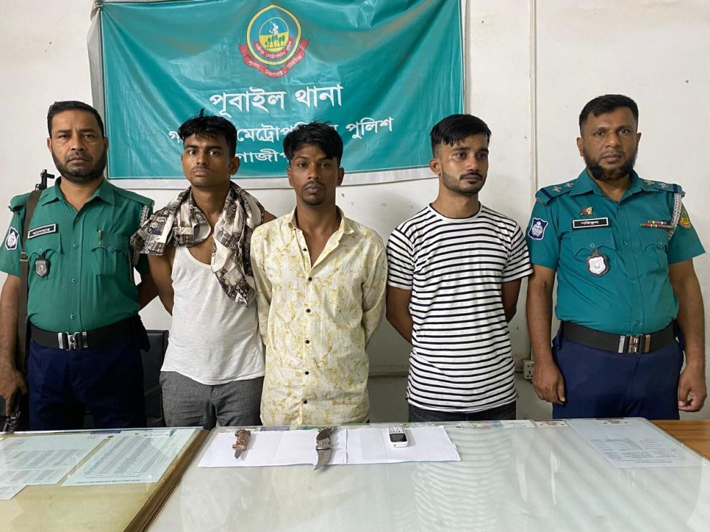 পূবাইলে দেশীয় অস্ত্রসহ আটক ৩
