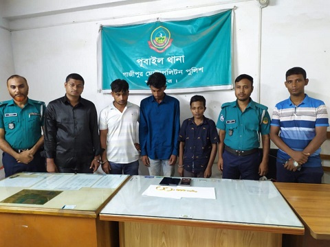 অপর আসামী রাকিবুল হাসান হৃদয় (২৪) একই থানার বড়াদল গ্রামের মৃত আকবর হোসেনের ছেলে ও অপু মিয়া (৩২) জয়দেবপুর থানার ছোট কয়ের এলাকার তামান মিয়ার ছেলে।