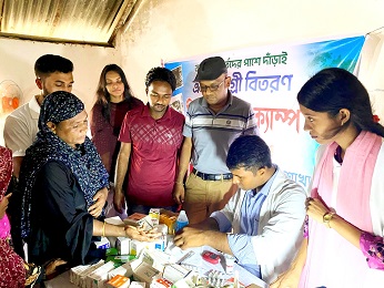গতকাল দিনব্যাপী বন্যাদুর্গত এলাকায় মানুষের পাশে দাঁড়াতে ত্রাণ সামগ্রী ও ফ্রি মেডিকেল ক্যাম্প মাধ্যমে ওষুধ বিতরণ নিয়ে ছুটে যান স্বজনরা।