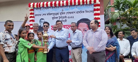 নরসিংদী থেকে হলধর দাস : বঙ্গবন্ধু গোল্ডকাপ প্রাথমিক বিদ্যালয় ফুটবল টুর্নামেন্ট ২০২২ ও বঙ্গমাতা শেখ ফজিলাতুন্নেছা মুজিব গোল্ডকাপ প্রাথমিক বিদ্যালয় ফুটবল টুর্নামেন্ট ২০২২ এর জেলা পর্যায়ের ফাইনাল খেলা শনিবার (২৪ সেপ্টেম্বর) সম্পন্ন হয়েছে। ঘোড়াদিয়া উচ্চ বিদ্যালয় মাঠে অনুষ্ঠিত খেলা ও পুরস্কার বিতরণী অনুষ্ঠানে প্রধান অতিথি ছিলেন নরসিংদী জেলা প্রশাসক আবু নইম মোহাম্মদ মারুফ খান। বিশেষ অতিথি ছিলেন অতিরিক্ত জেলা প্রশাসক (শিক্ষা ও আইসিটি) আব্দুল্লাহ আল জাকী, নরসিংদী সদর উপজেলা চেয়ারম্যান ফুটবলার আফতাব উদ্দিন ভূইয়া। জেলা প্রাথমিক শিক্ষা অফিসার (অতিরিক্ত দায়িত্ব প্রাপ্ত) শহিদুল আজমের সভাপতিত্বে অনুষ্ঠিত এ প্রতিযোগিতা ও পুরস্কার বিতরণী অনুষ্ঠানে অন্যান্যের মধ্যে পলাশ উপজেলা নির্বাহী অফিসার ফারহানা আফসানা চৌধুরী, রায়পুরা উপজেলা নির্বাহী অফিসার মোঃ আজগর হোসেন প্রমুখ।