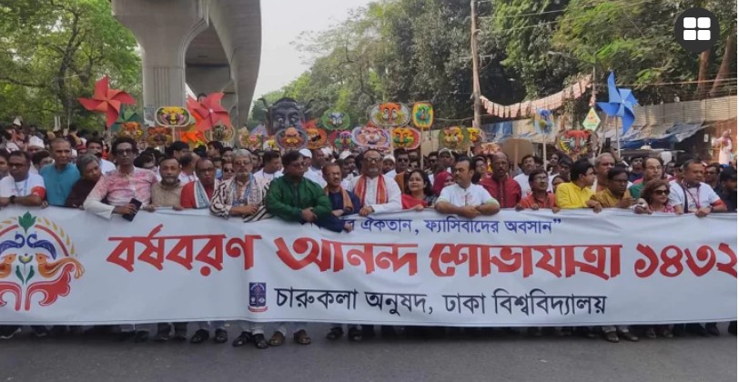 খুলনা: যথাযোগ্য মর্যাদা ও আনন্দঘন পরিবেশে খুলনায় বাংলা নববর্ষ-১৪৩২ উদ্যাপিত হচ্ছে। জেলা প্রশাসন আয়োজিত অনুষ্ঠানের মধ্যে ছিল বর্ষবরণ আনন্দ শোভাযাত্রা, আলোচনা সভা, লোকজ মেলা ও সাংস্কৃতিক অনুষ্ঠান।